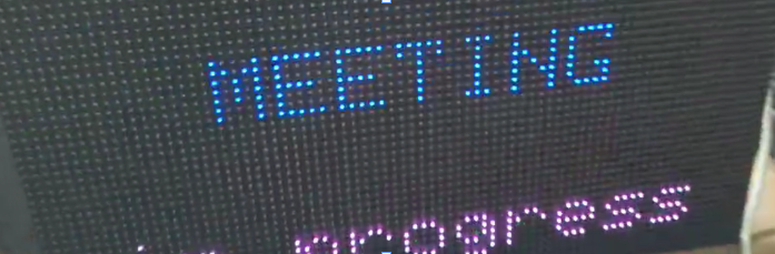 I am working on a small project using an ESP8266 and a P4 LED matrix panel (80×40 pixels, 1/20 scan). My goal is to display a static message (no scrolling or animations), for example “MEETING” on the top line and “in progress” below it.